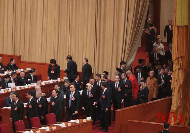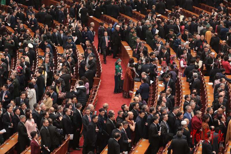 3月4日,北京,人民大会堂,全国政协十四届四次会议开幕会结束后,委员们排队离开。中青报·中青网记者 陈剑/摄