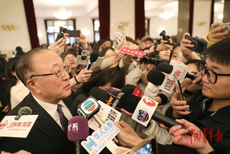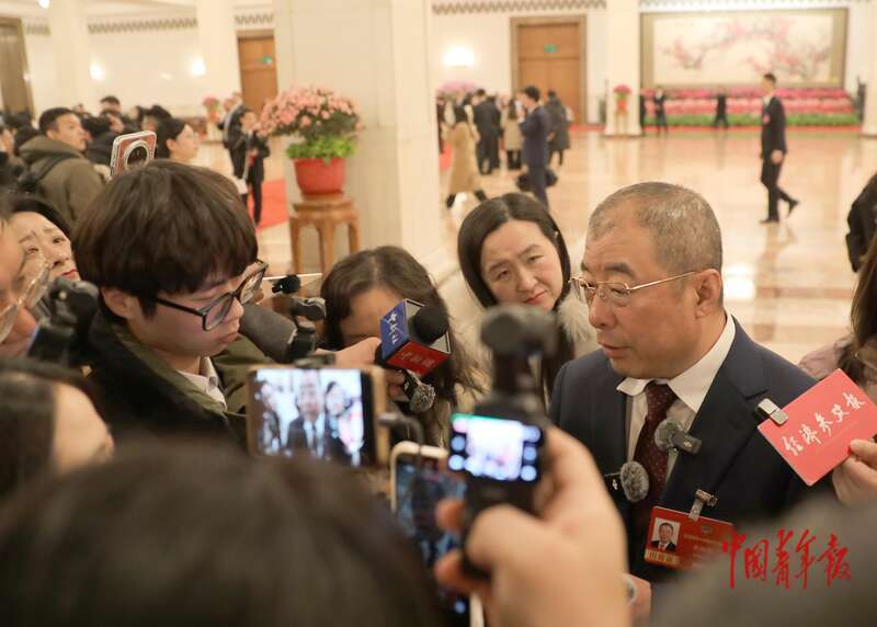 3月4日,北京,人民大会堂,全国政协十四届四次会议开幕会开始前,全国政协委员、博鳌亚洲论坛秘书长张军接受记者采访。中青报·中青网记者 陈剑/摄