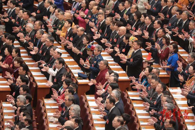 3月4日,北京,人民大会堂,全国政协十四届四次会议开幕会上,委员们在鼓掌。中青报·中青网记者 陈剑/摄